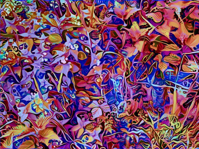 I hope you get the basic idea. This tool is as simple to use as it gets —you just choose two pictures, optionally tune a few parameters, and let the algorithmic magic do the rest. At the same time, it’s incredibly powerful. With a smart combination you can create high quality, powerful art that is novel and unlike either of the images you start with. I like to use it to create abstract patterns like the ones you can see below. They are made from pictures of simple things around me, like curtains or plants.