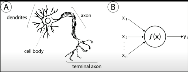 As, we can see from the comparison, a neuron in Neural network also gets data (x1, x2, …, xn) process them through a function and store an output just like a human brain does with its dendrites (inputs), cell body (f(n)) and axon (output).