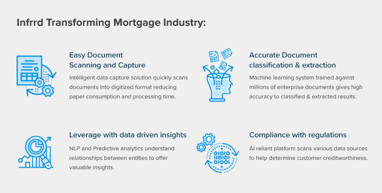 Infrrd’s intelligent document capture based on AI & machine learning classifies, separates, extracts & validates documents regardless of the source or format. Here’s how Infrrd is transforming the mortgage industry: