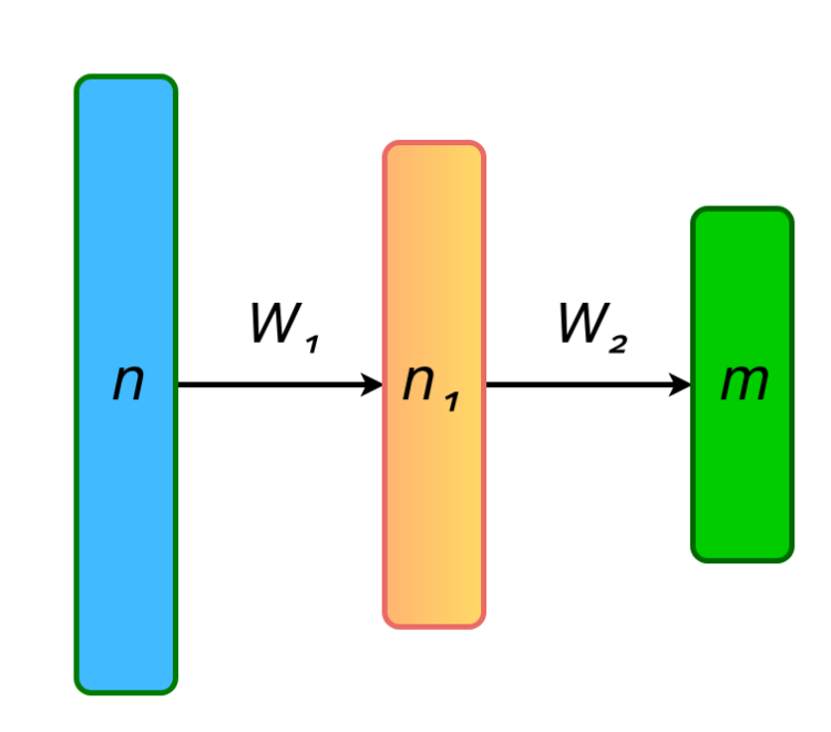 Instead of the above technique, let us say that the ‘n’ input variables are transformed into ‘n1’ intermediate variables by a function ‘f1’ (or a matrix ‘W1’). Then, let us say that these ‘n1’ intermediate variables are transformed into the output ‘m’ variables by a function ‘ f2’ (or a matrix ‘W2’). The final user will see only the input variables and the output variables and not the ‘n1’ intermediate variables because these are not of much importance to the final user. Thus, this set of ‘n1’ variables is called a hidden layer.