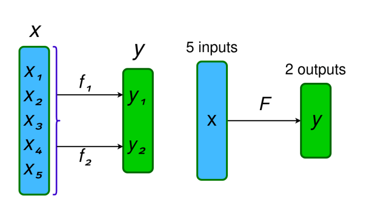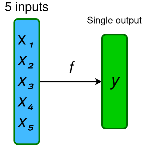 Similarly, we can also have multiple outputs being given by the function f. For example, the price of a house as well as the rent of a house could be predicted.