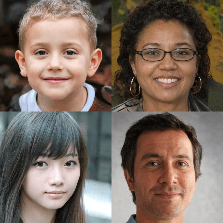 - Image generation — Generating new images of a particular type. The people in the picture below do not exist! These faces have been generated by AI!!
