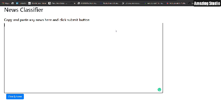Now you just have to go to google or inshorts.com which contains short news and copy any news text andpaste it into the text area of your homepage. And then click Classify News Button.