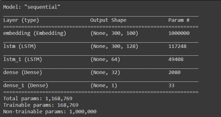 model.add(Embedding(max_features, output_dim=embed_size, weights=[embedding_matrix], input_length=maxlen, trainable=False))